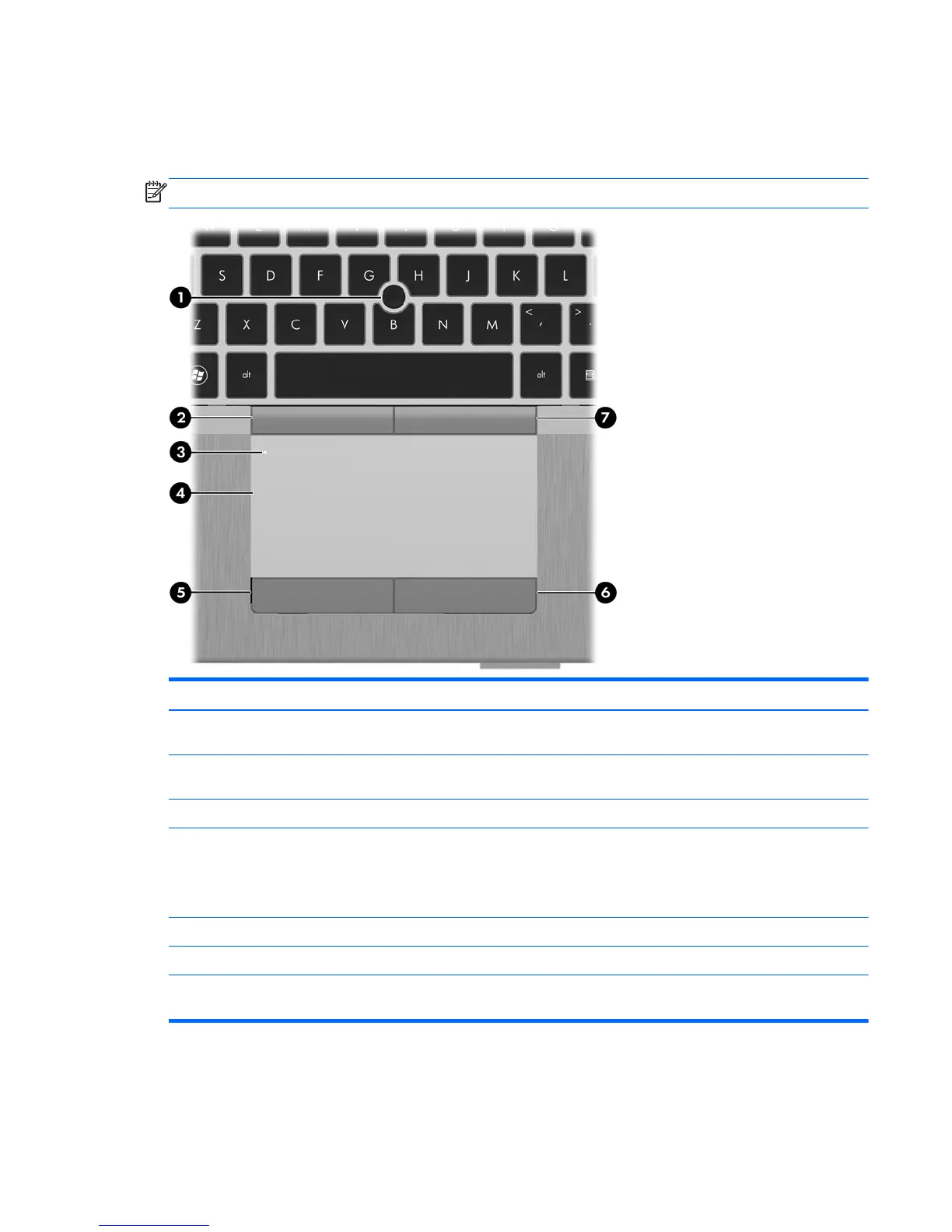 (5) Left TouchPad button Functions like the left button on an external mouse.