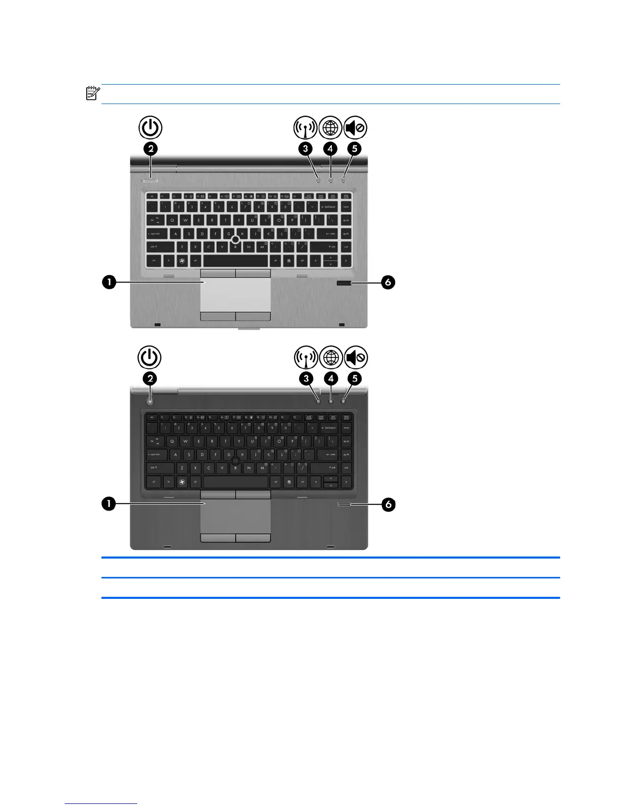 (1) TouchPad on/off button Turns the TouchPad on and off.