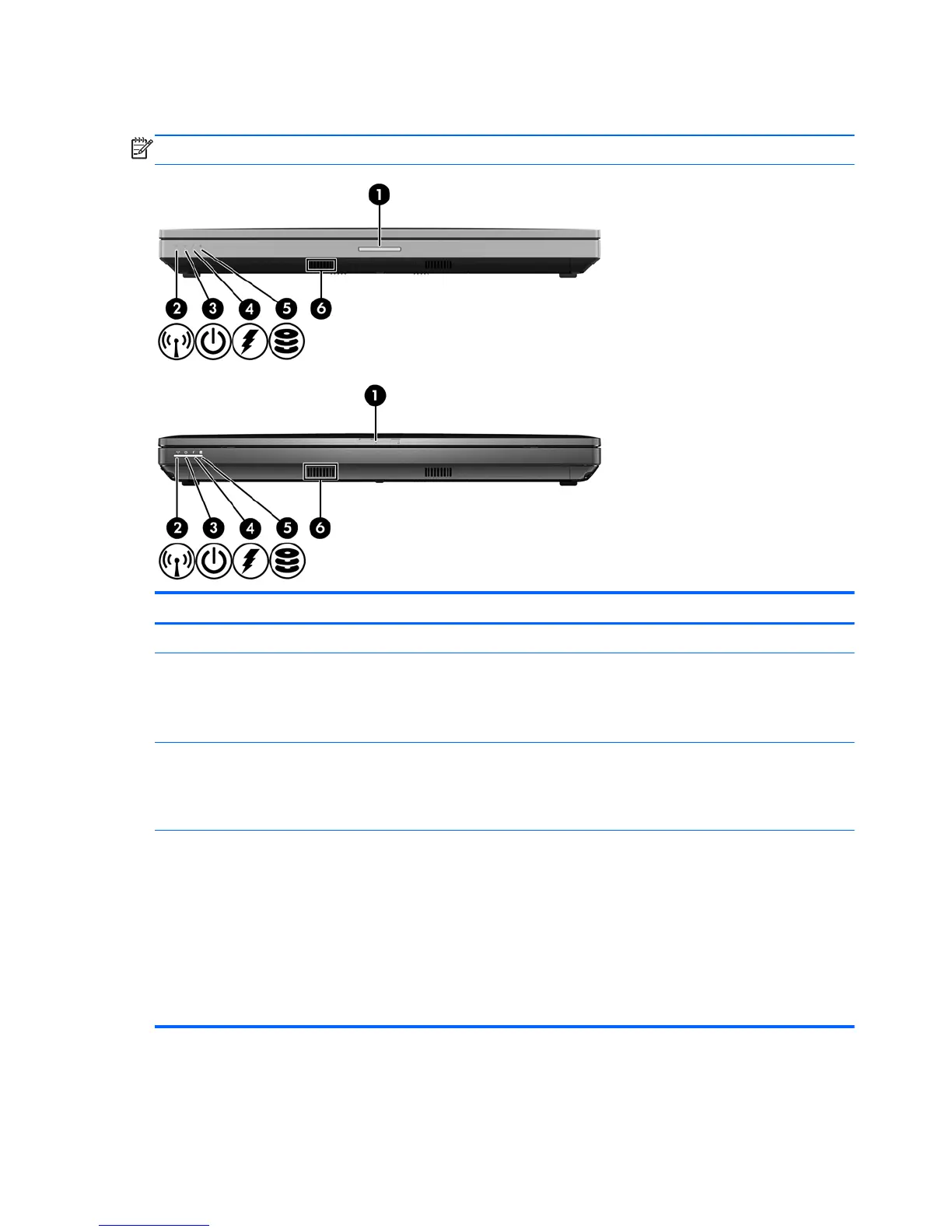 (1) Display release latch Opens the computer.