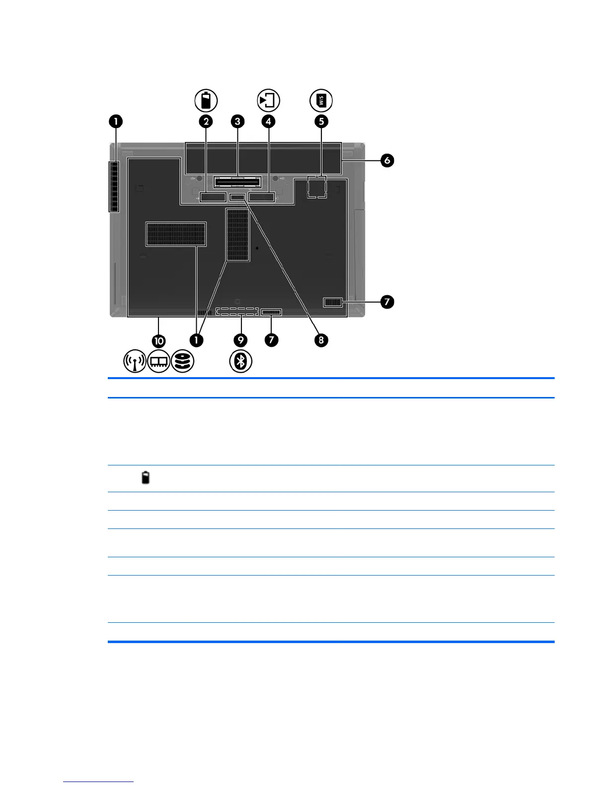 (5) SIM slot Contains a wireless subscriber identity module (SIM). The