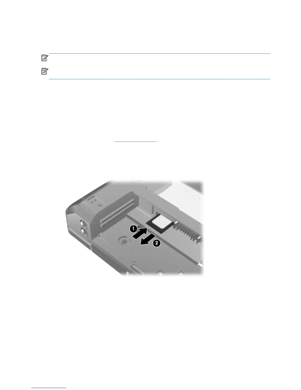 1. Press in on the SIM (1). (The module is partially ejected from the SIM slot.)