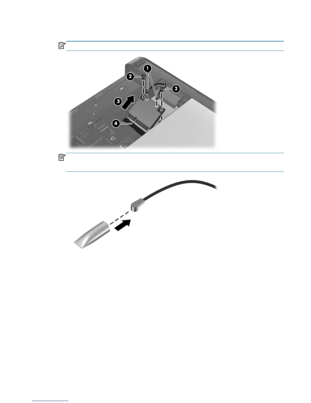 NOTE: If the WLAN antennas are not connected to the terminals on the WLAN module, the