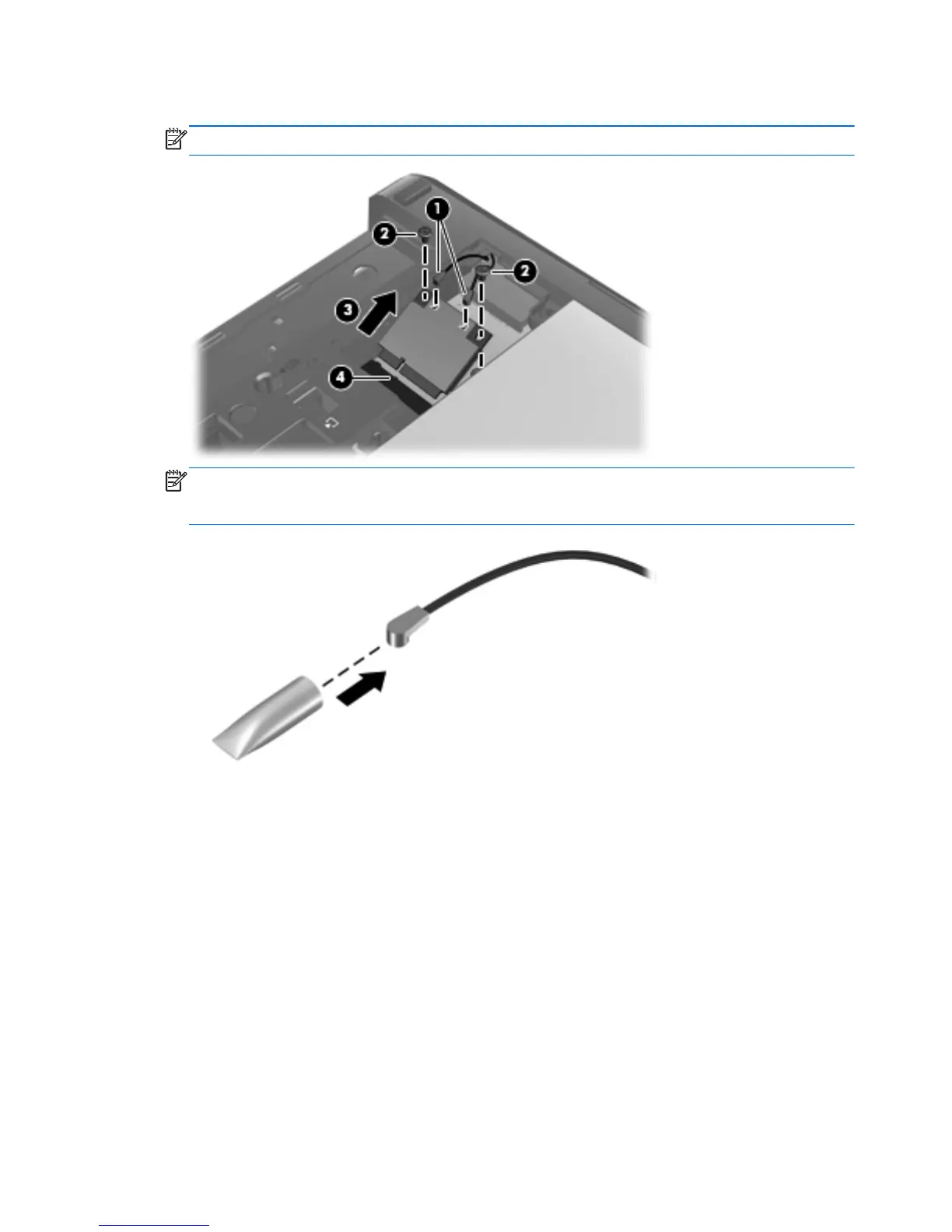 NOTE: WLAN modules are designed with a notch (4) to prevent incorrect insertion.