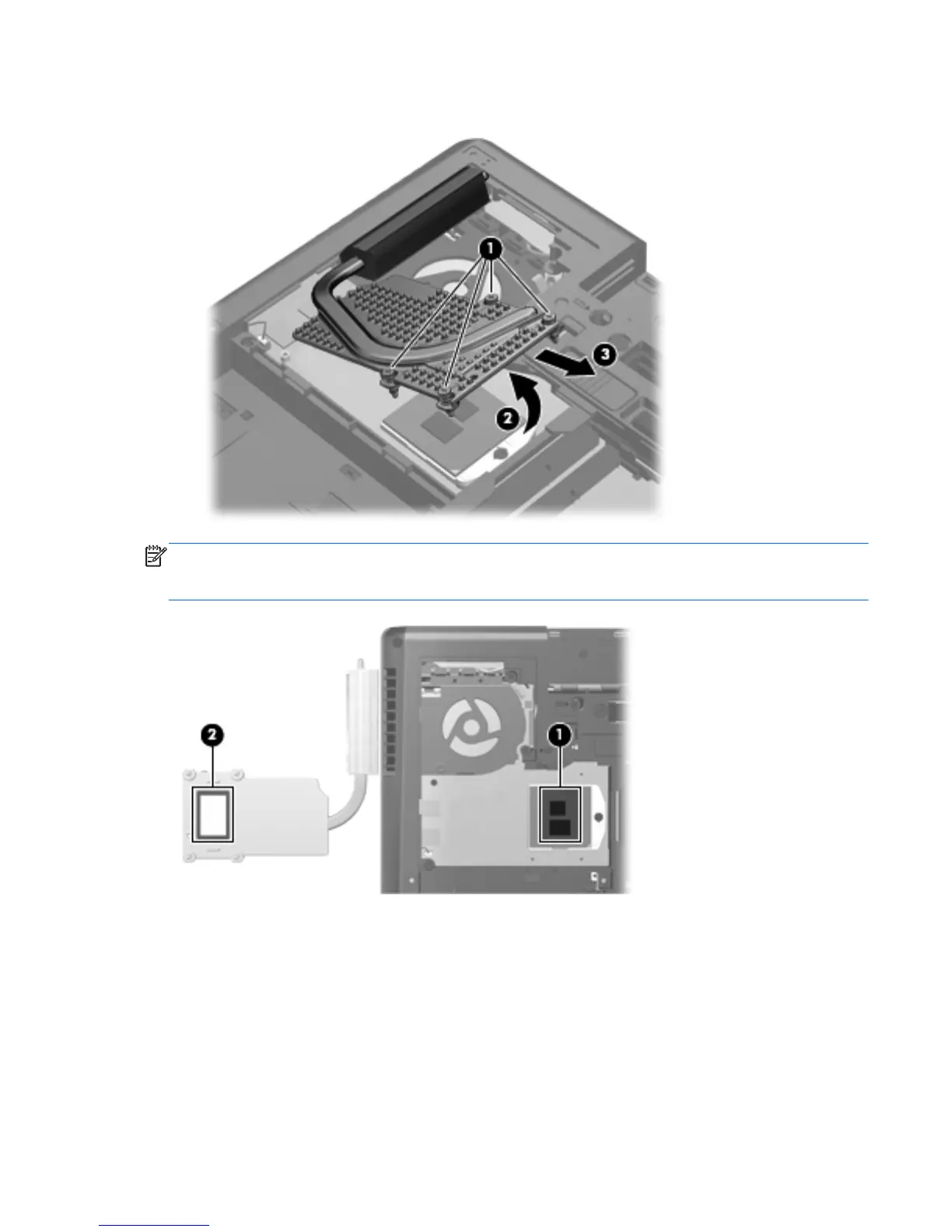 NOTE: Thoroughly clean thermal material from the surfaces of the processor (1) and the heat sink