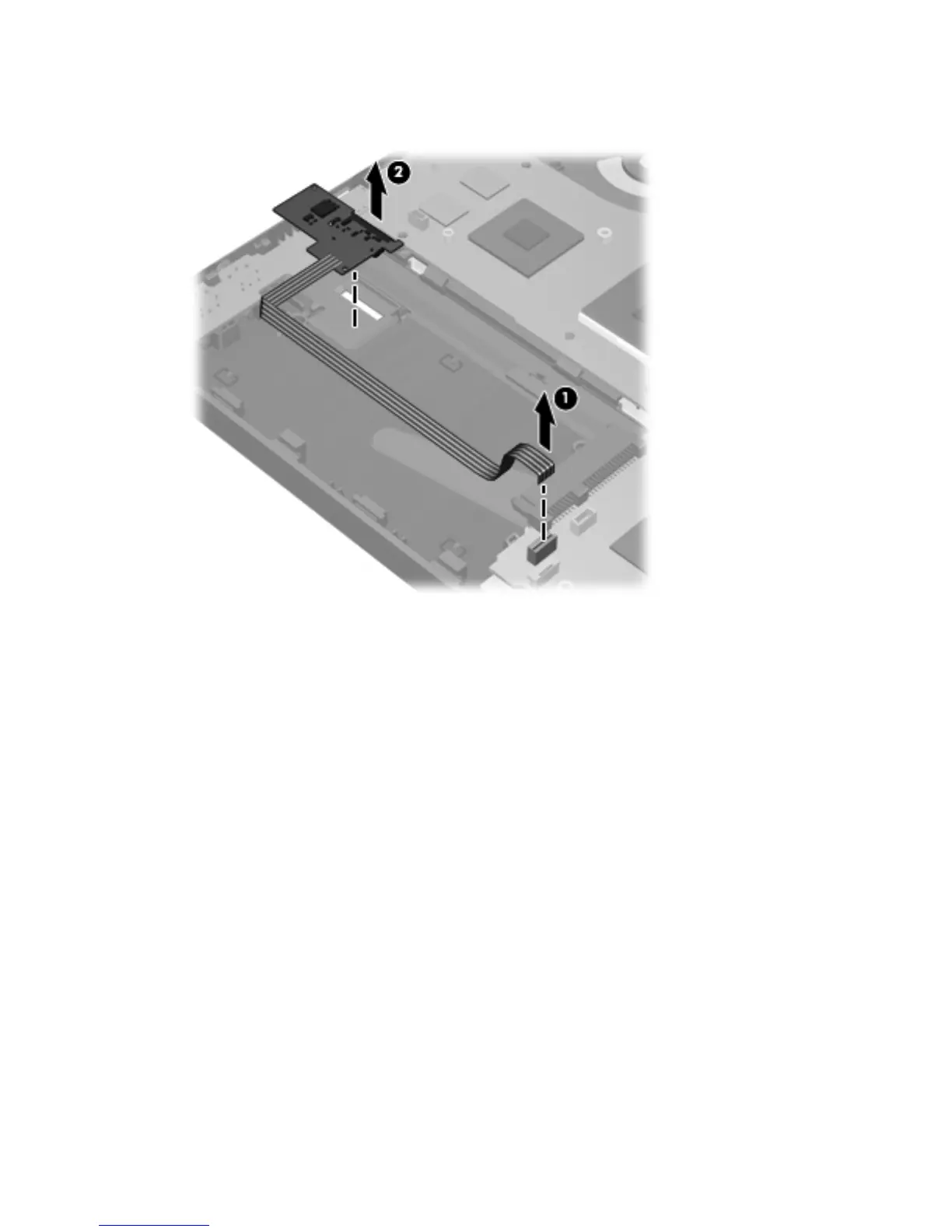2. Disconnect the cable from the system board (1), and then lift the board straight up and off the