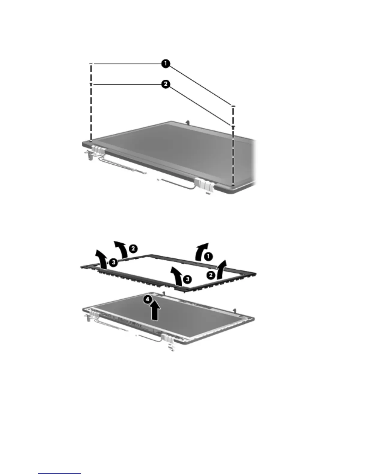 (3) of the bezel until it disengages from the display enclosure.