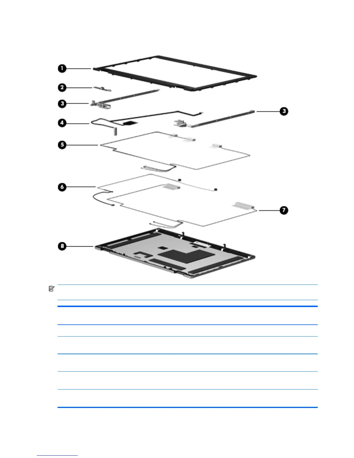 NOTE: Display assembly subcomponents are available only for standard display assemblies. Flush