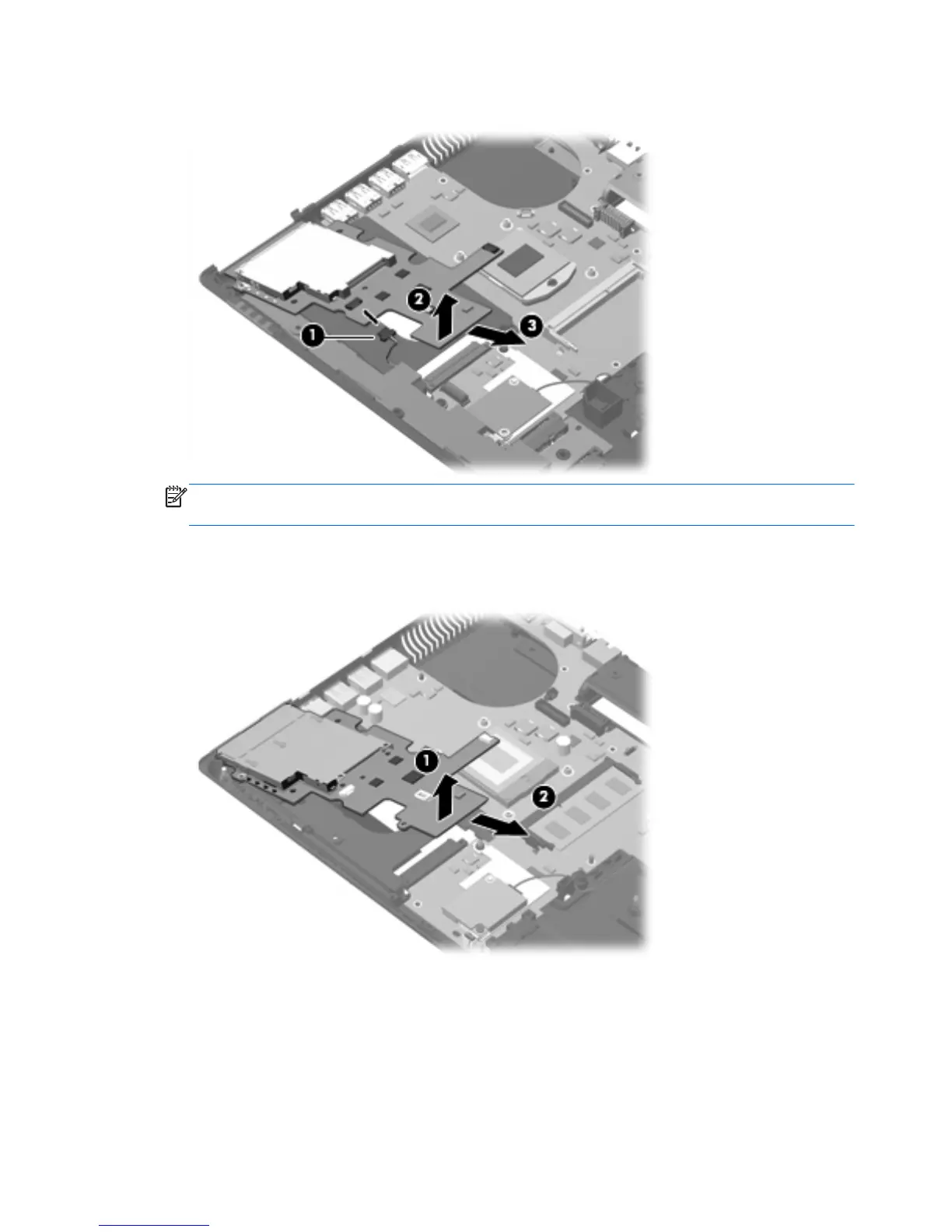 Remove the ExpressCard assembly (3) by sliding it up and to the right.
