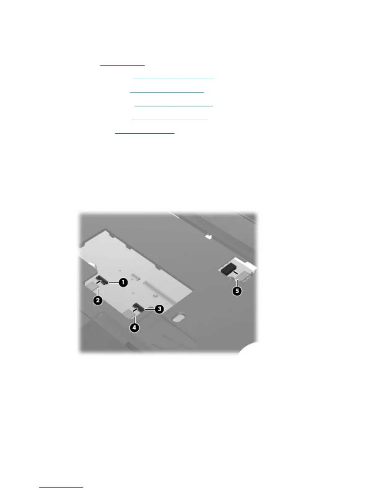 2. Lift the Touchpad connector latch (1) and disconnect the Touchpad cable (2).