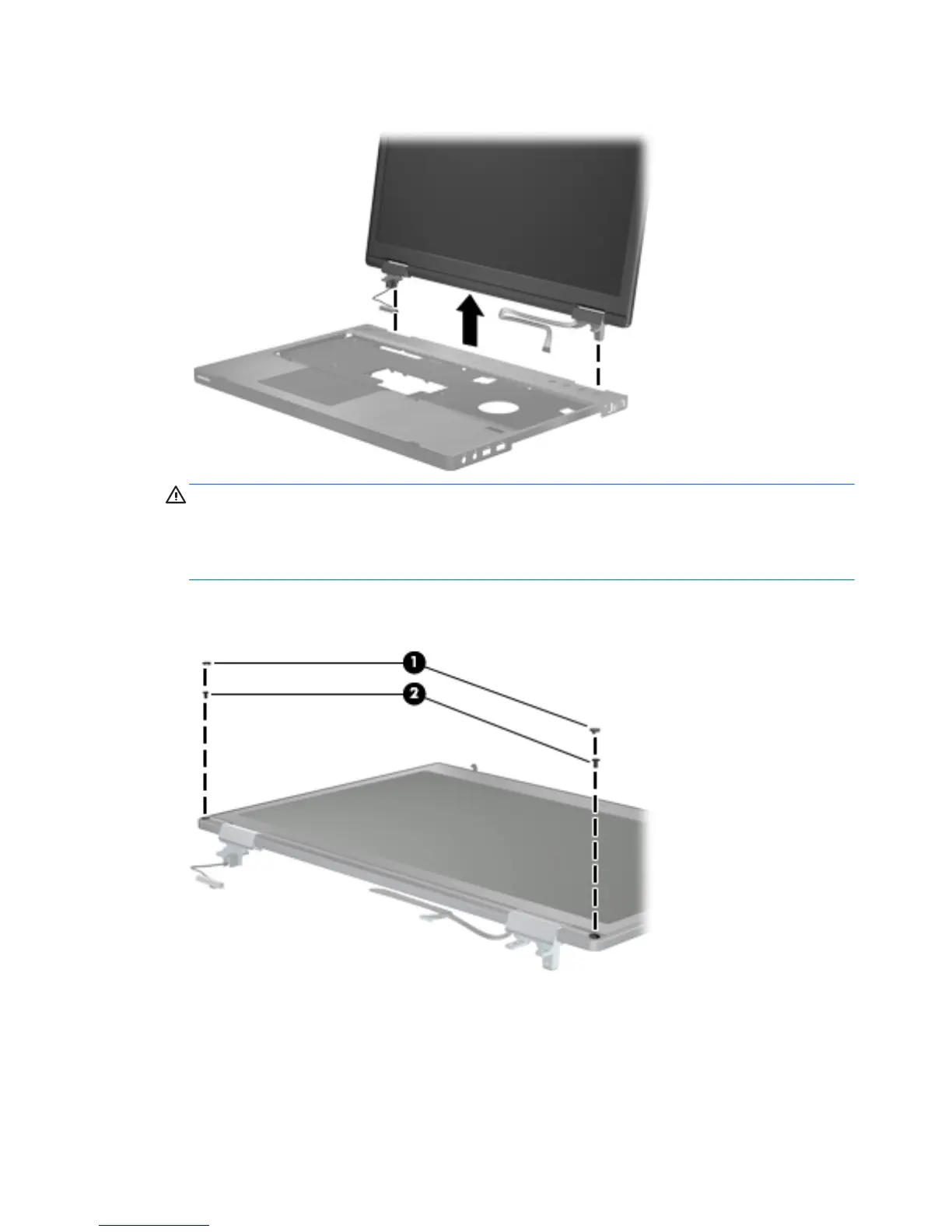 CAUTION: When installing the display assembly, be sure that the wireless antenna cables are
