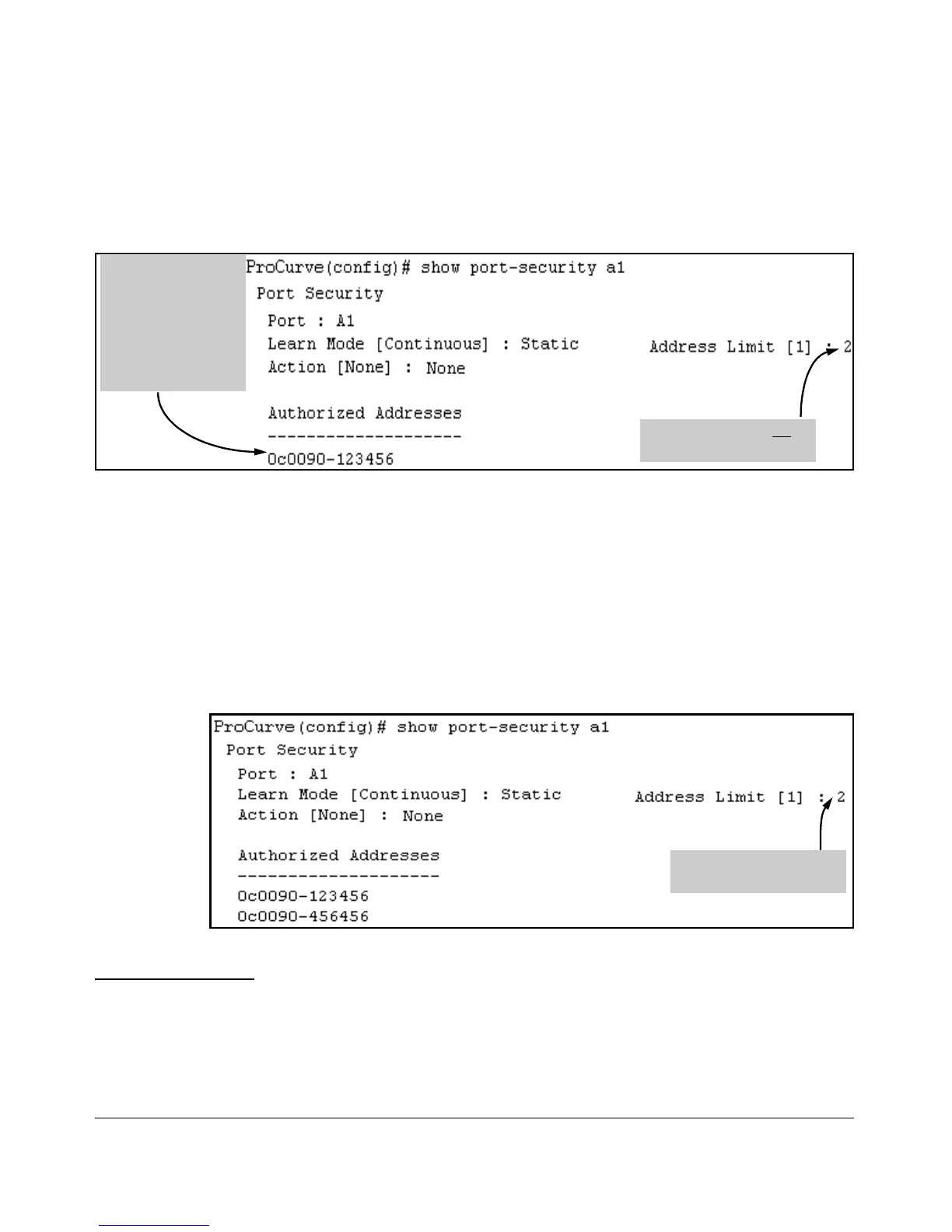 ProCurve(config)# port-security a1 mac-address 0c0090-