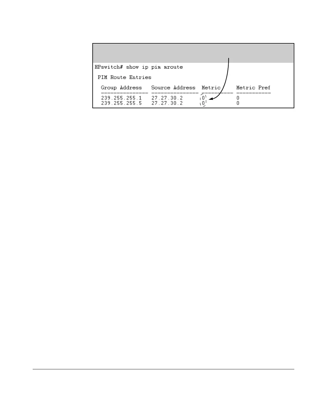 device at 27.27.30.2. The “0” metric shows that the routing switch is directly connected to