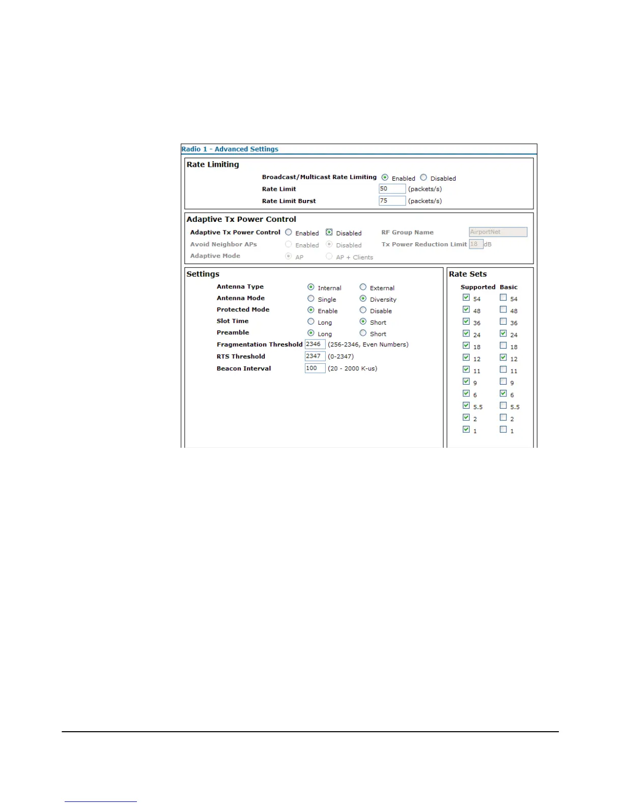 6. Select rate set values (24, 12, and 6), using the Basic options.