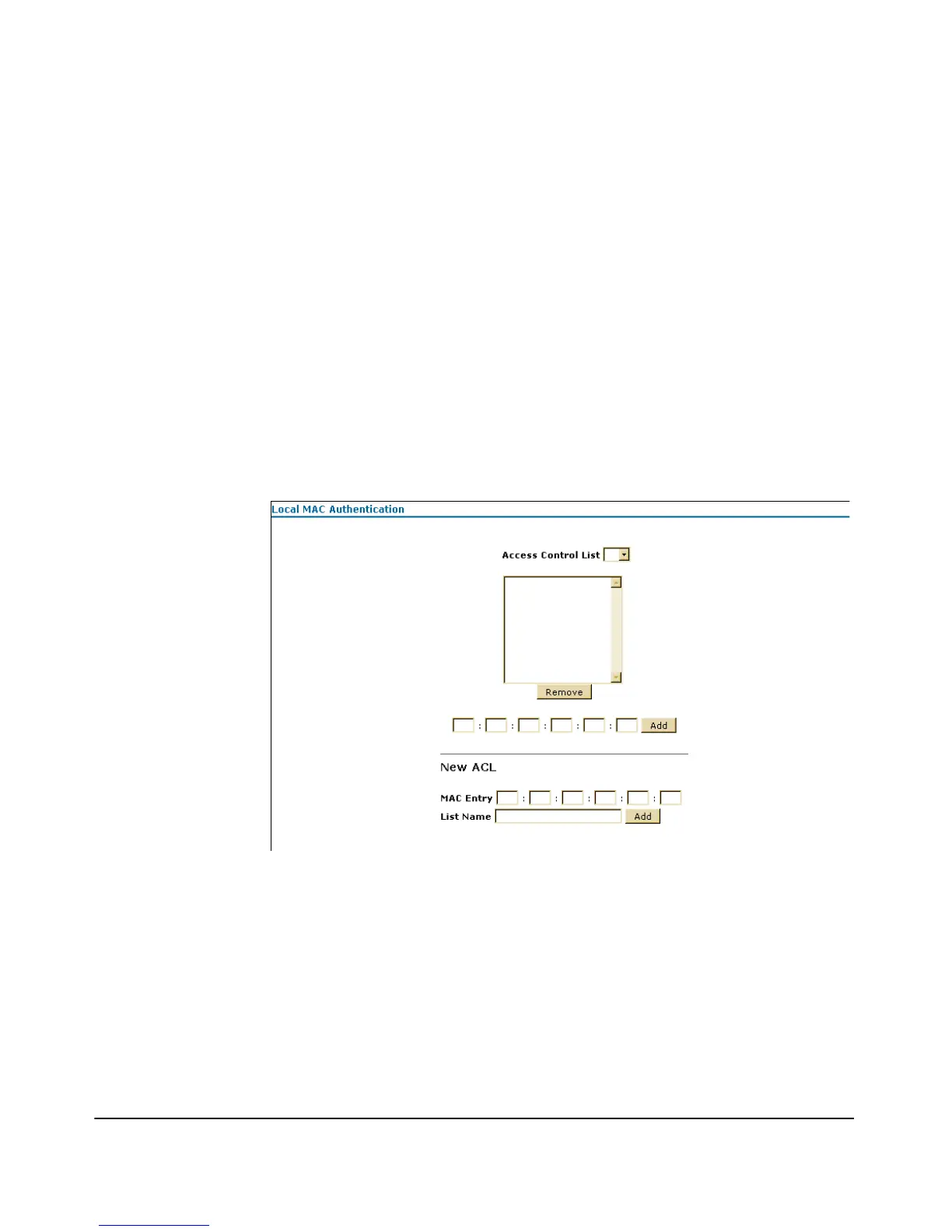 The Local MAC Authentication tab shown in Figure 7-9 enables you to create