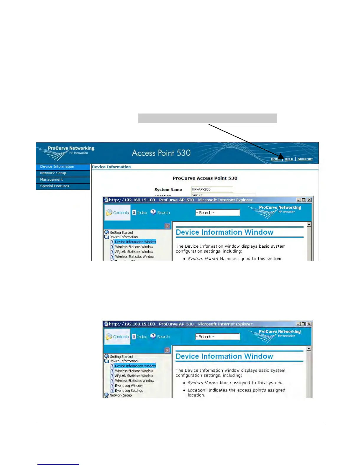 At the top left of the Online Help page is a Topic and Menu bar display for easy
