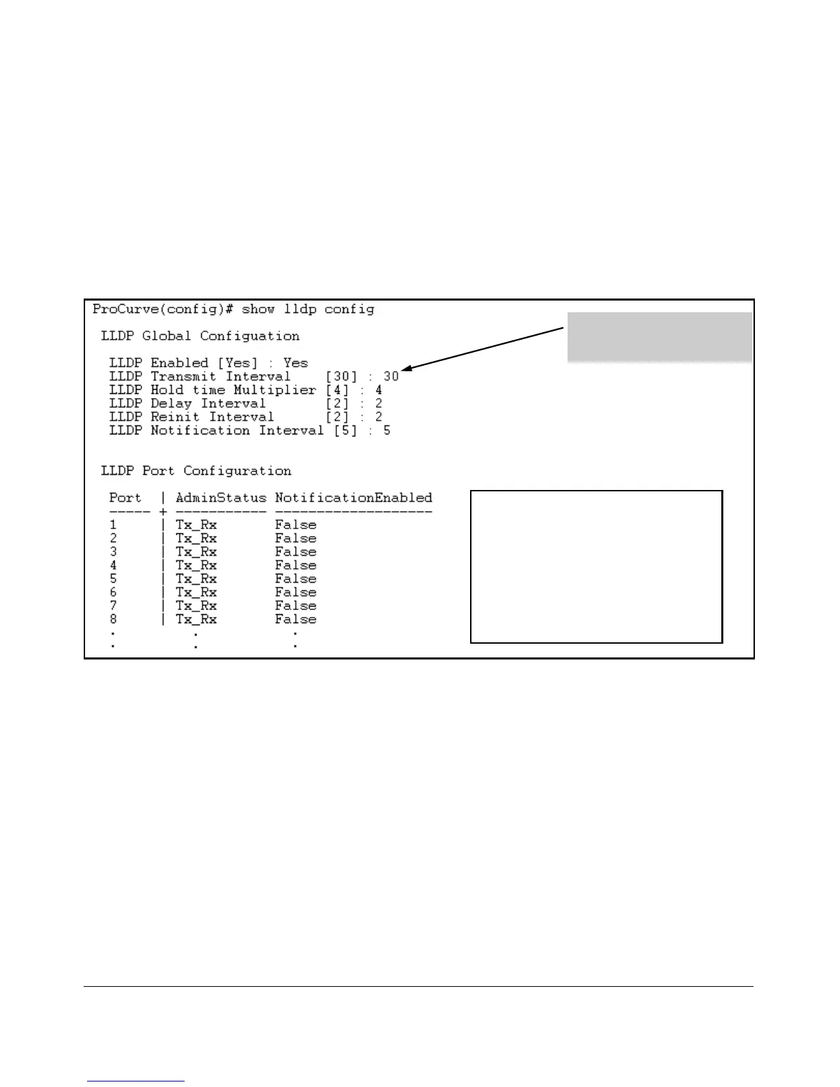 For example, show lldp config produces the following display when the switch
