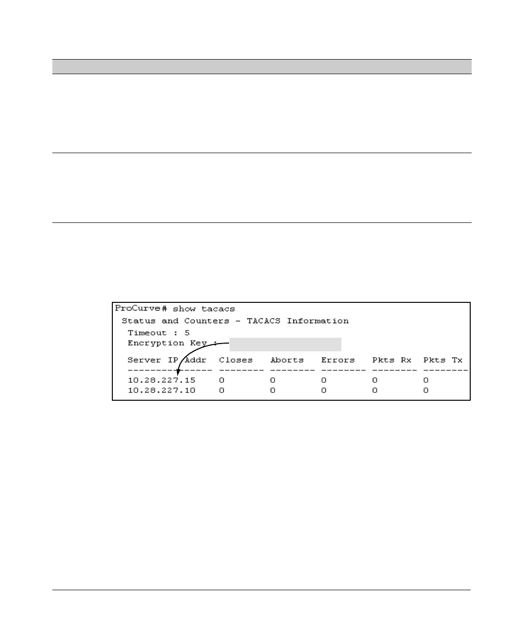 accessing TACACS+ servers for which you have not given the switch a “per-server” key. (See the host <ip-addr> [key