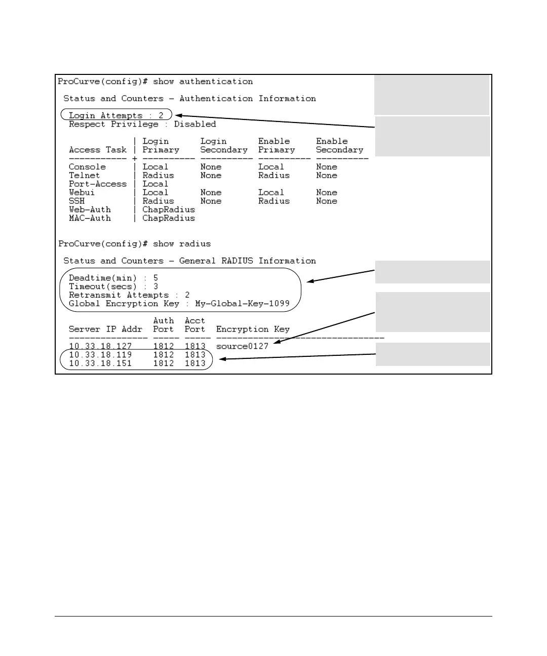 Figure 6-6. Listings of Global RADIUS Parameters Configured In Figure 6-5
