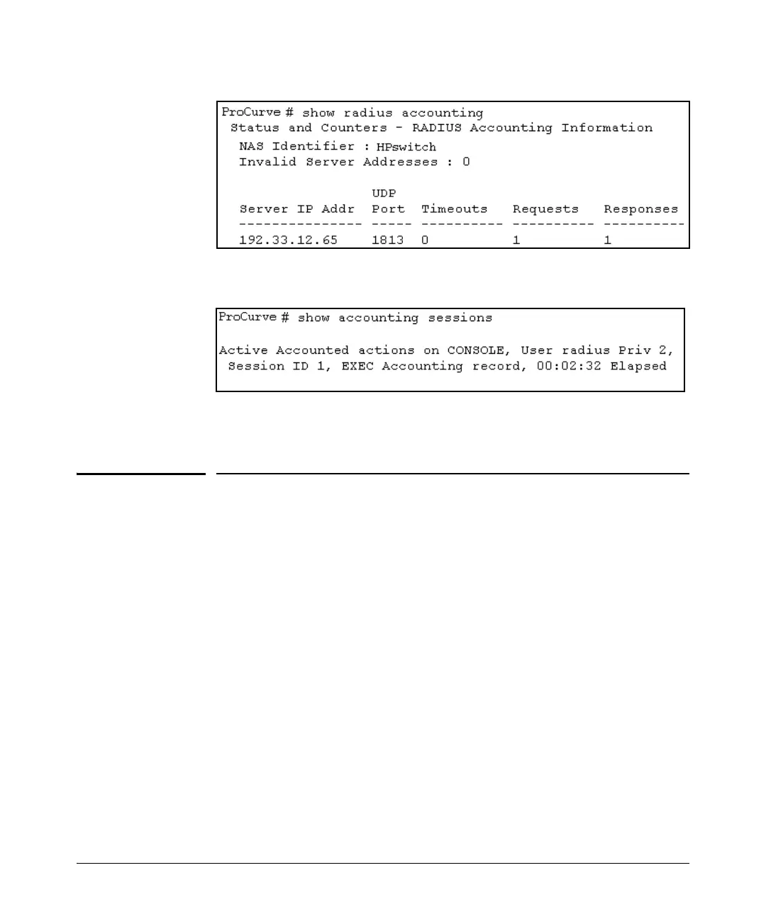 Figure 6-16. Example Listing of Active RADIUS Accounting Sessions on the