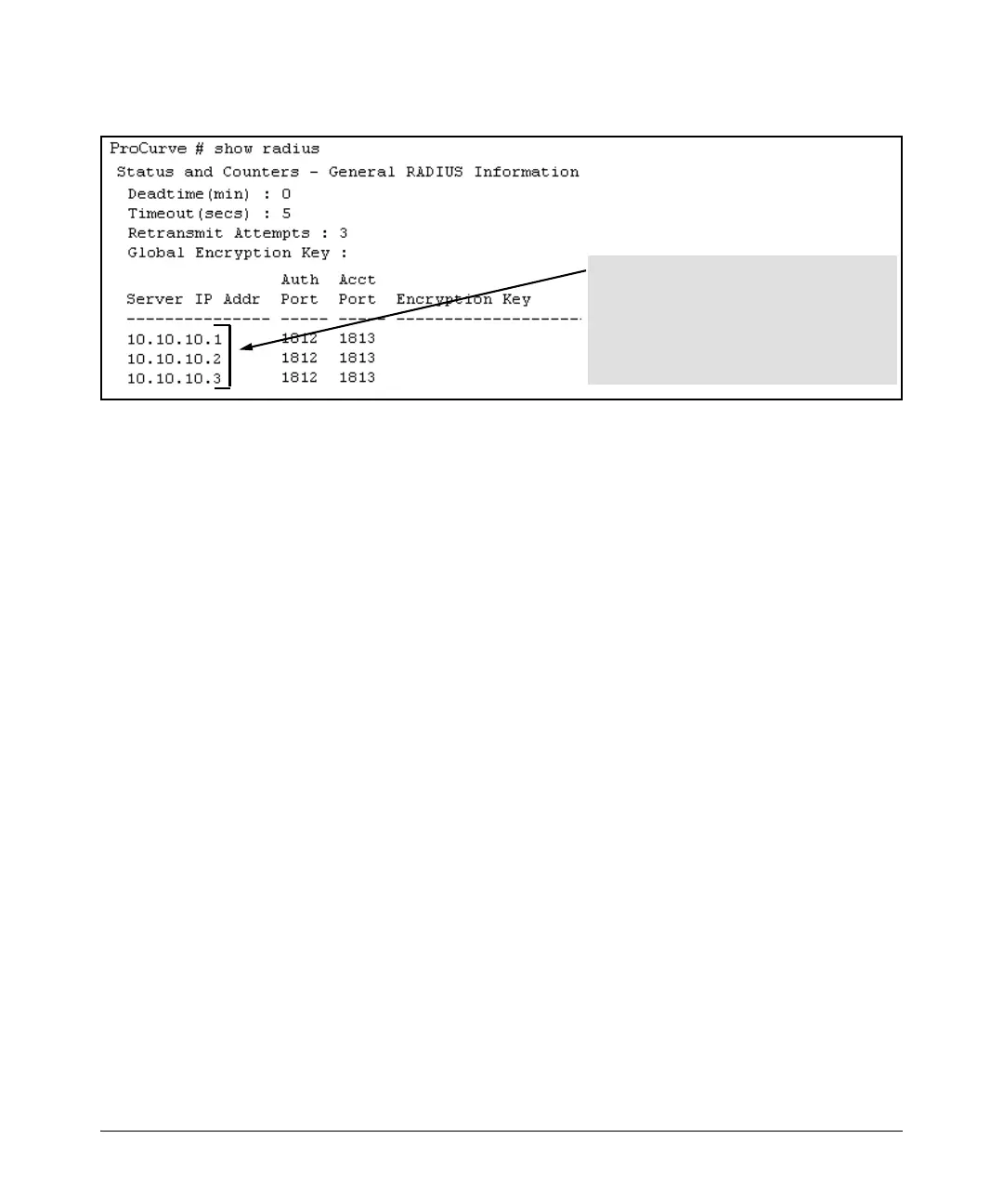 RADIUS server IP addresses listed in the order