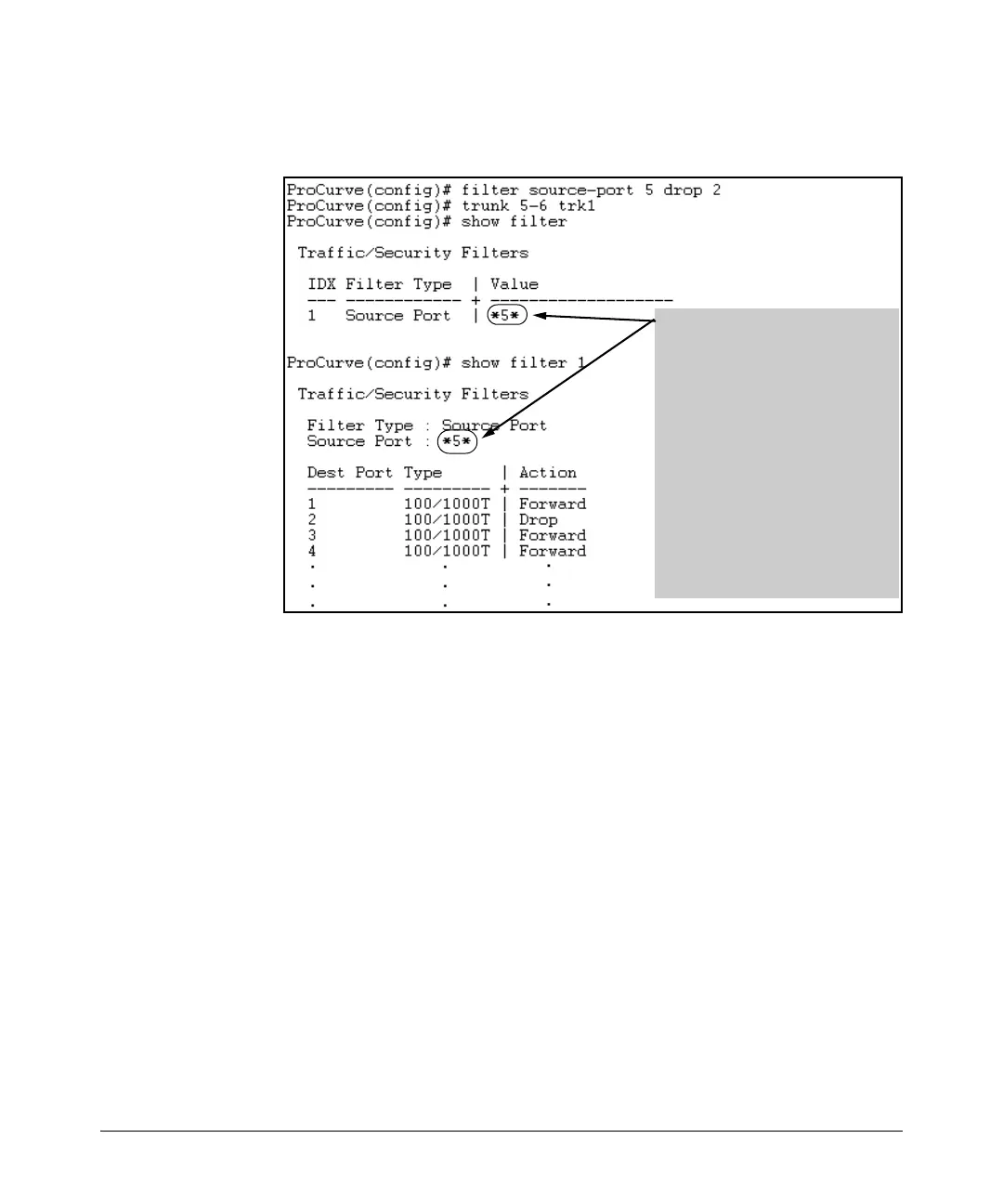 trunks configured for a given source port or trunk. Thus, if a source-port filter
