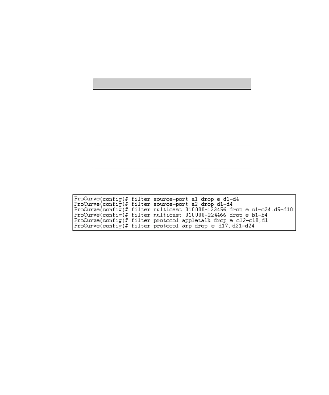 For example, suppose you wanted to configure the filters in table 9-3 on a