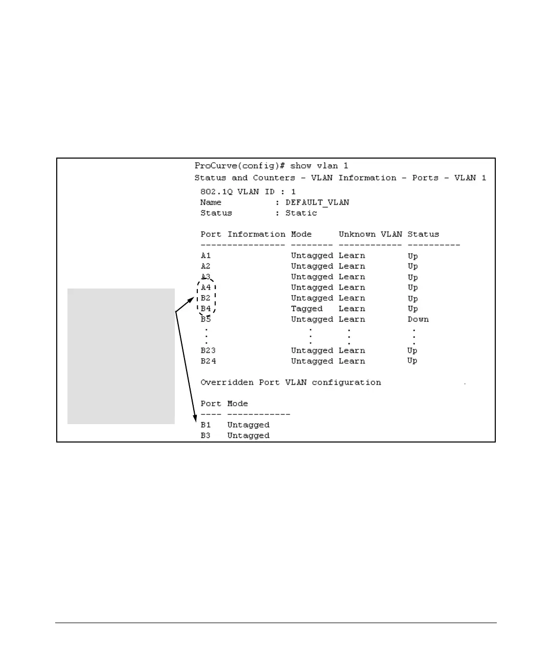 Figure 10-8. Example of Showing a VLAN with Ports Configured for Open VLAN Mode