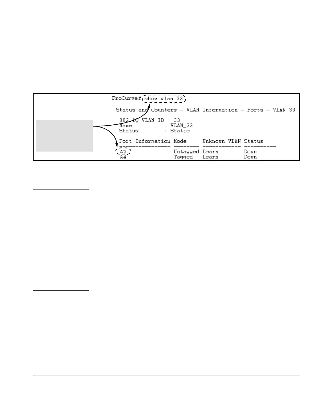 Figure 10-12.The Active Configuration for VLAN 33 Restores Port A2 After the 802.1X Session Ends