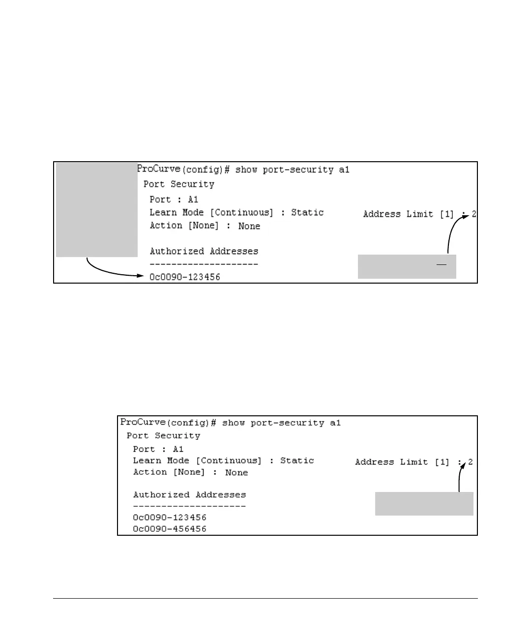 ProCurve(config)# port-security a1 mac-address 0c0090-