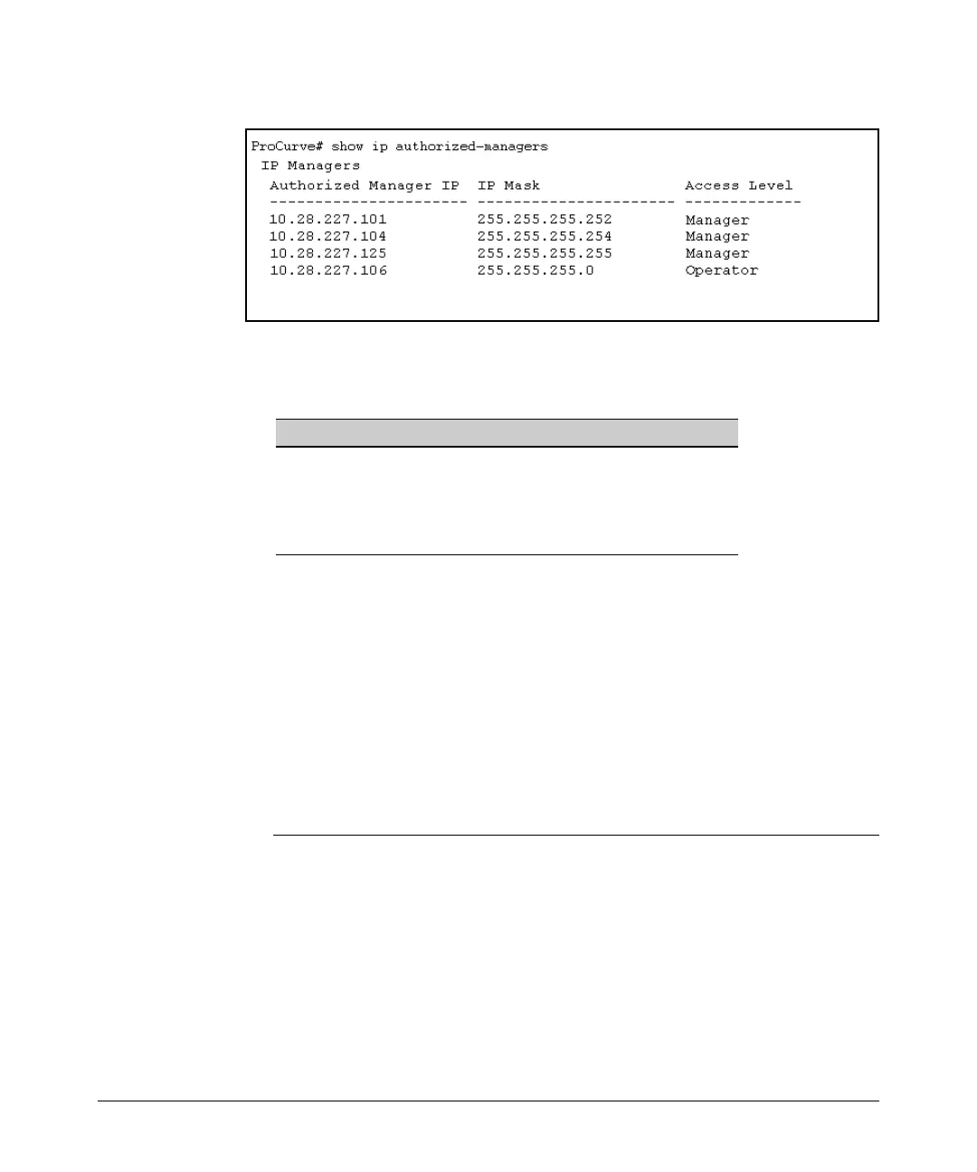 ProCurve(config)# ip authorized-managers 10.28.227.101