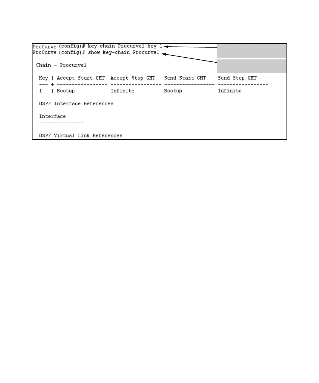 Syntax: [no] key-chain < chain_name > key < key_id >