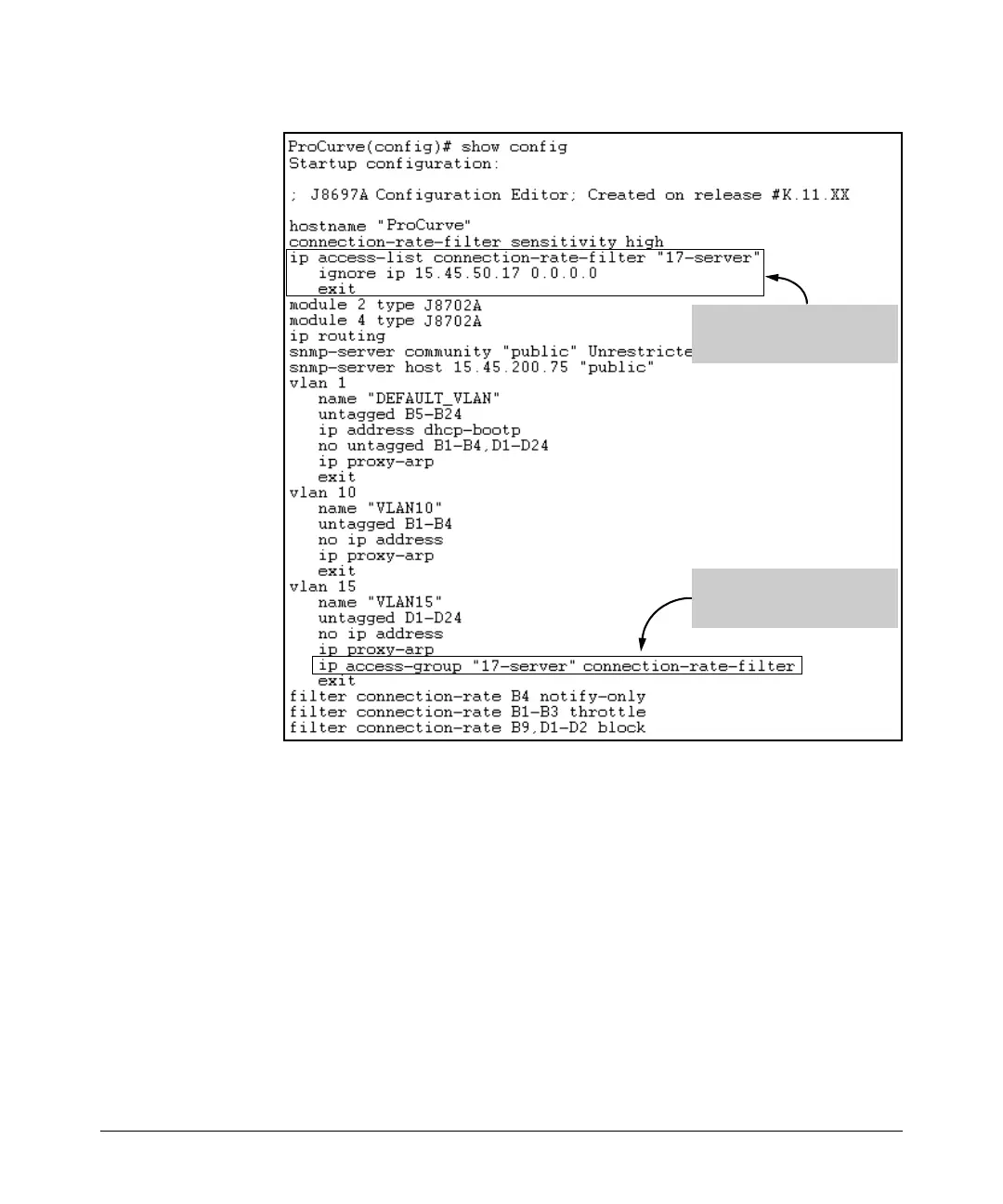 Figure 3-12. Example of Switch Configuration Display with a Connection-Rate ACL