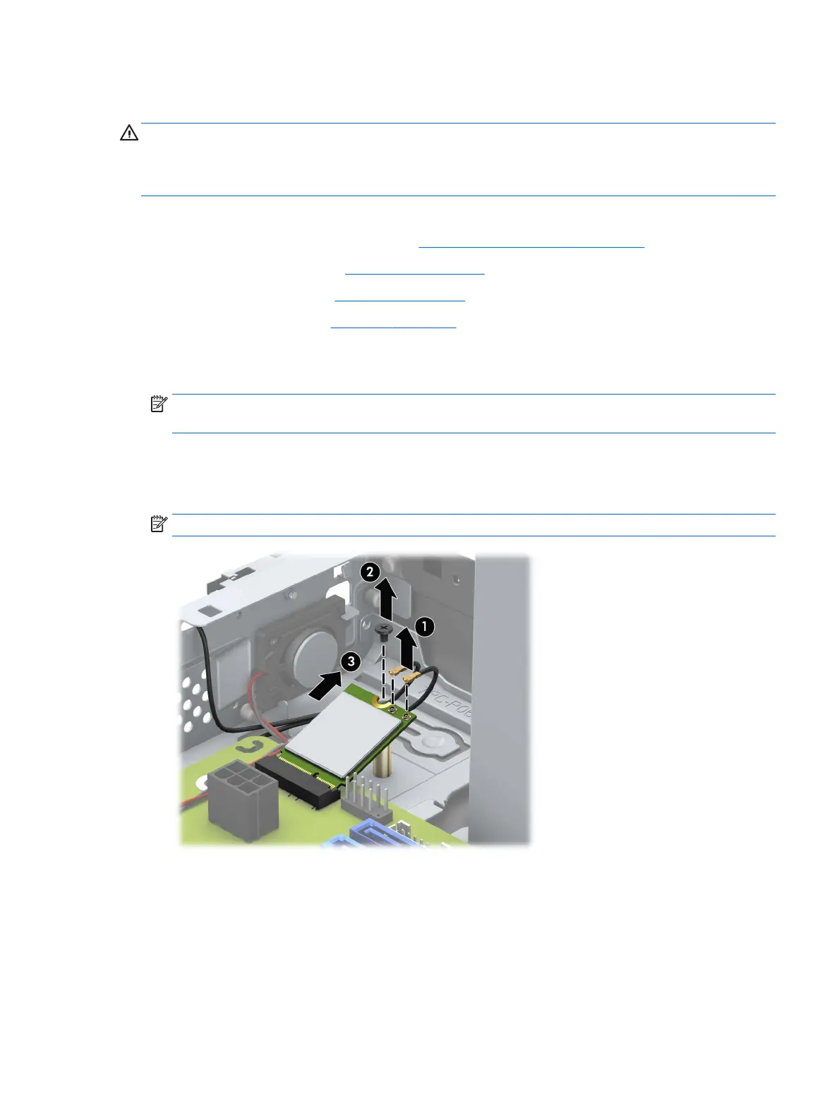 3. Remove the WLAN module (3)by pulling the module away from the slot at an angle.