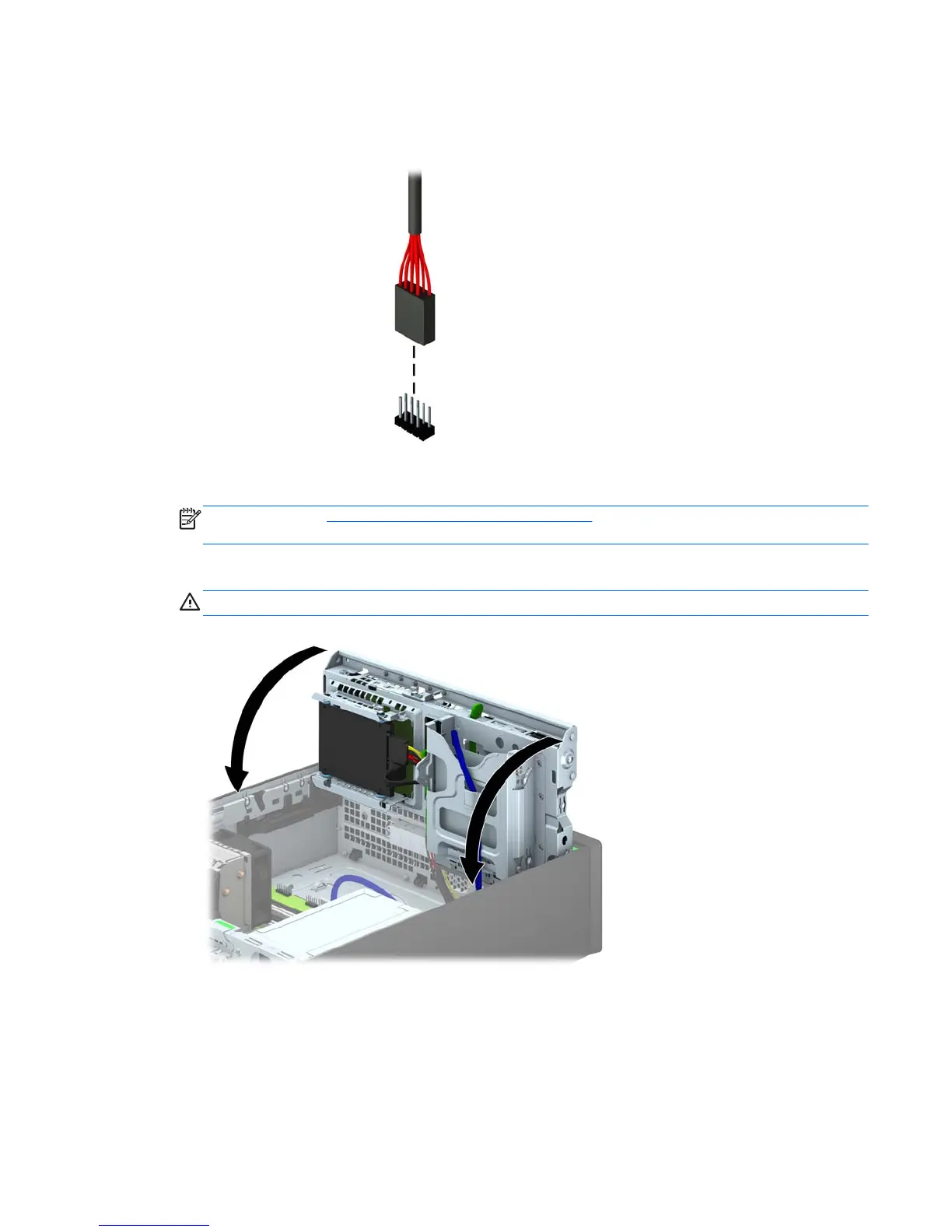 CAUTION: Be careful not to pinch any cables or wires when rotating the drive cage down.