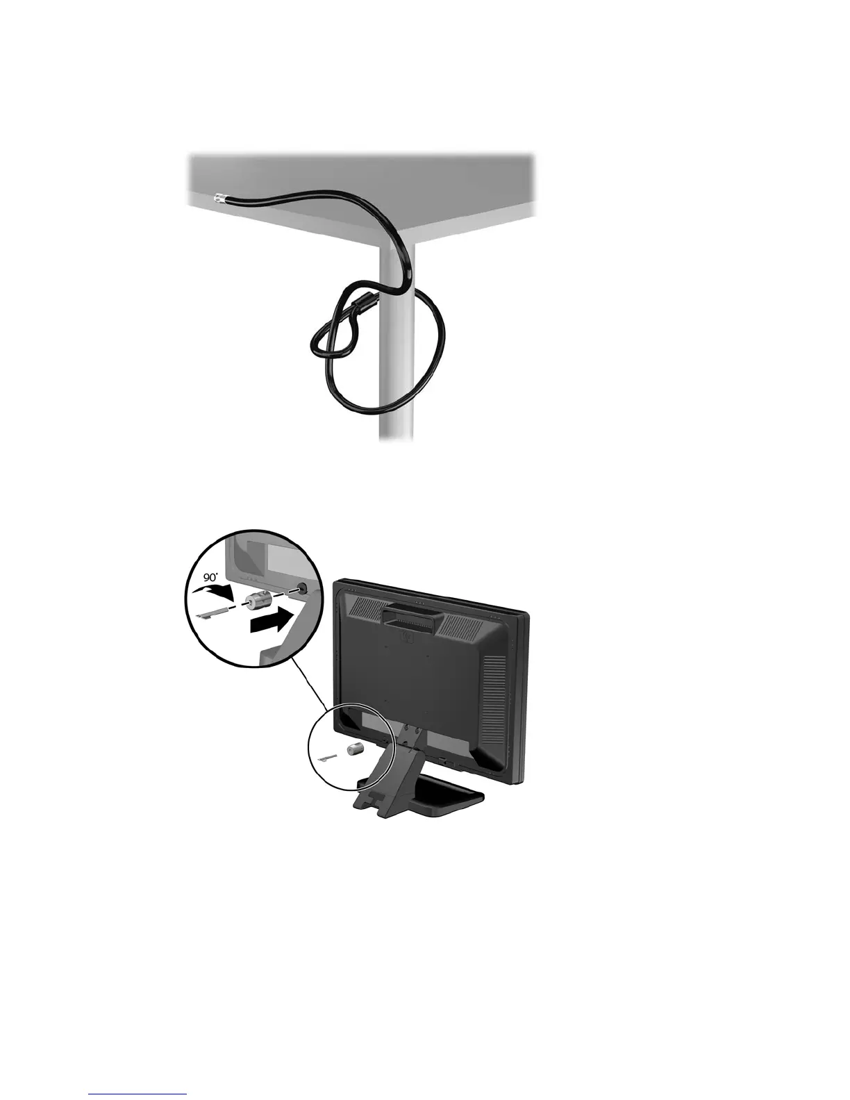 2. Insert the cable lock into the cable lock slot on the back of the monitor and secure the lock to the