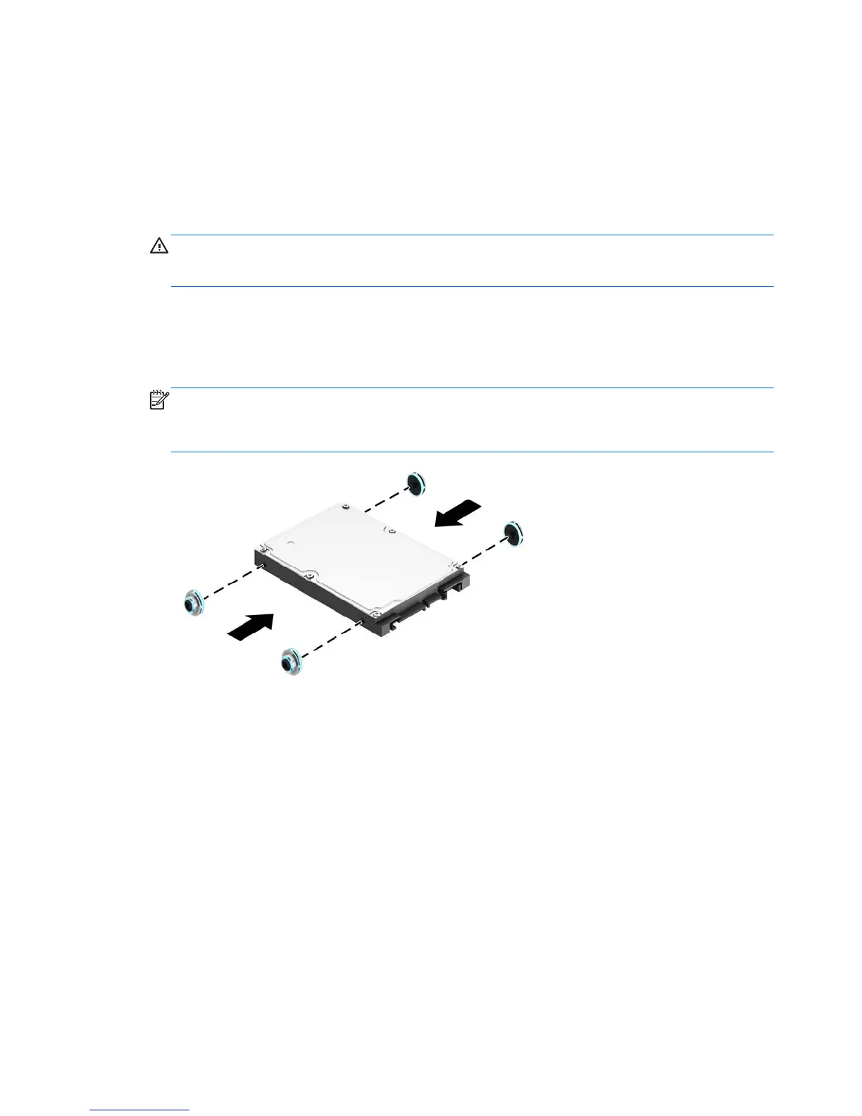 When replacing a drive, transfer the four M3 isolation mounting guide screws from the old drive