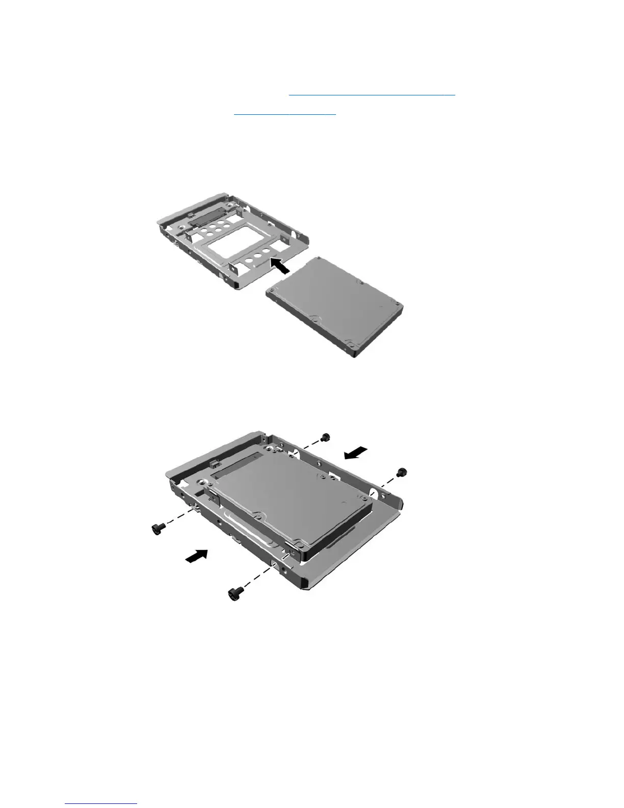 Secure the drive to the bay adapter bracket by installing four black M3 adapter bracket screws