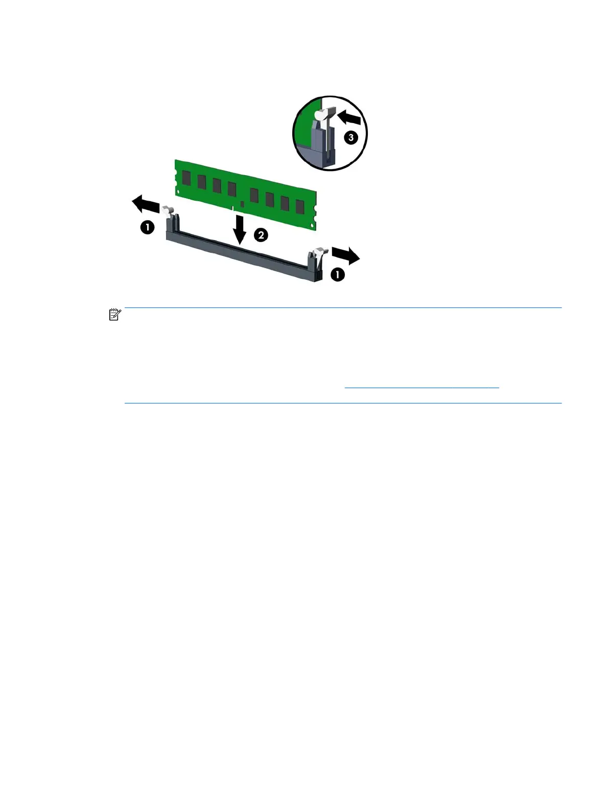 NOTE: A memory module can be installed in only one way. Match the notch on the module with the tab
