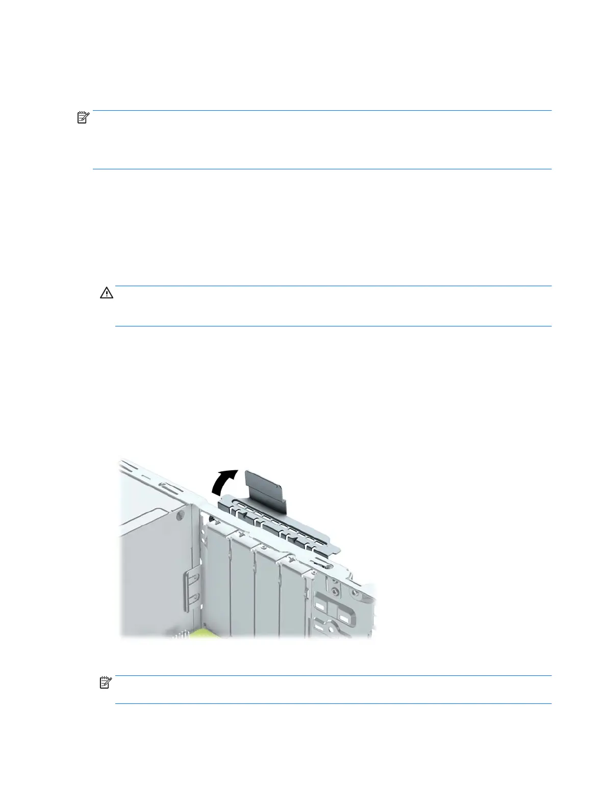 8. Release the slot cover retention latch that secures the slot covers by lifting the tab on the latch and