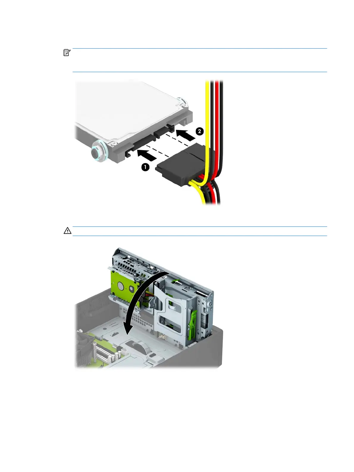 CAUTION: Be careful not to pinch any cables or wires when rotating the drive cage down.