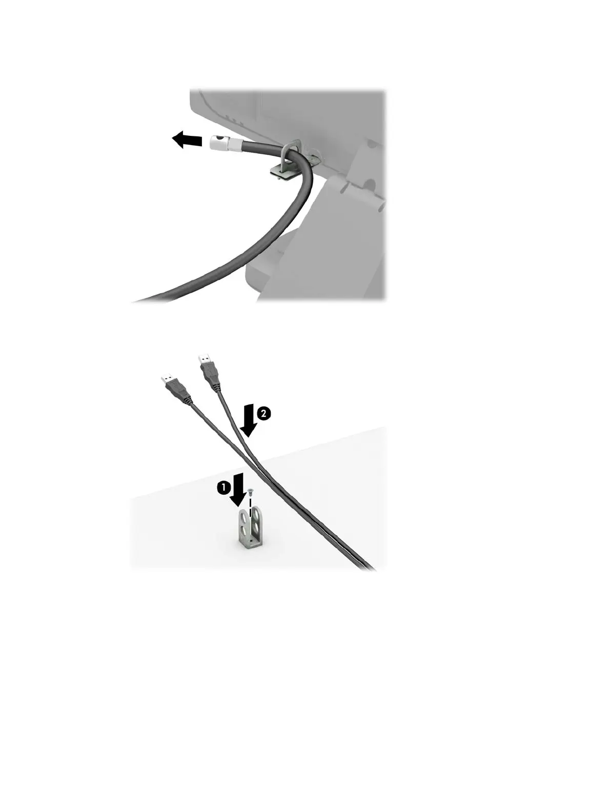 (screw not provided) (1), and then place the accessory cables into the base of the fastener (2)