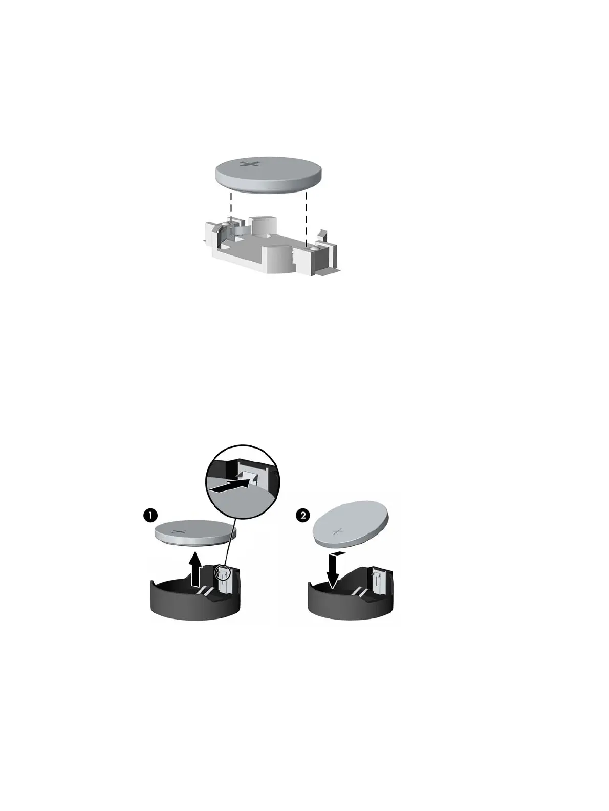 b. To insert the new battery, slide one edge of the replacement battery under the holder’s lip with