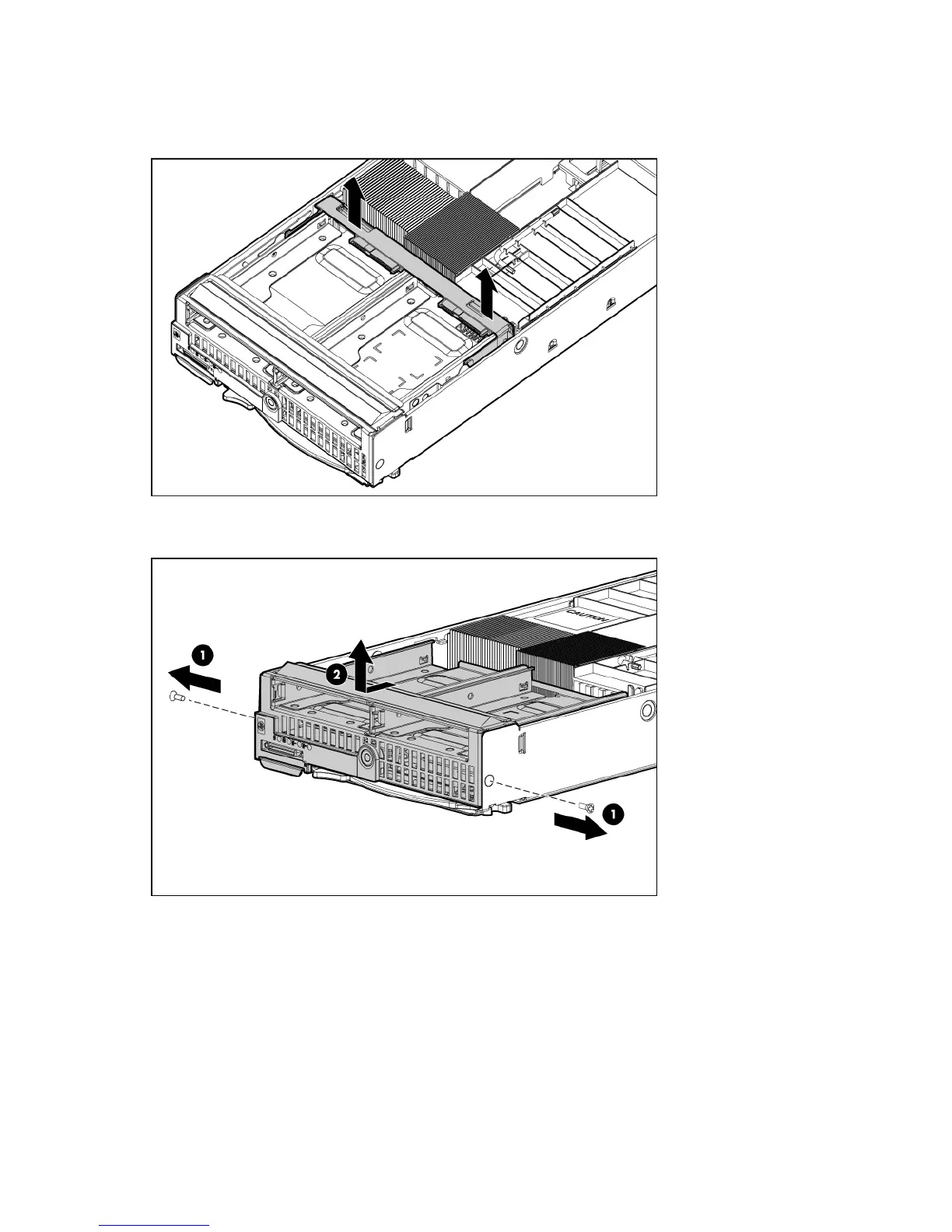 7. Remove the two T-15 screws from the front panel/hard drive cage assembly.