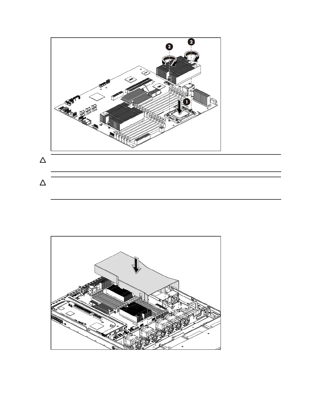 CAUTION: For proper cooling, do not operate the server without the top cover, air baffle, expansion
