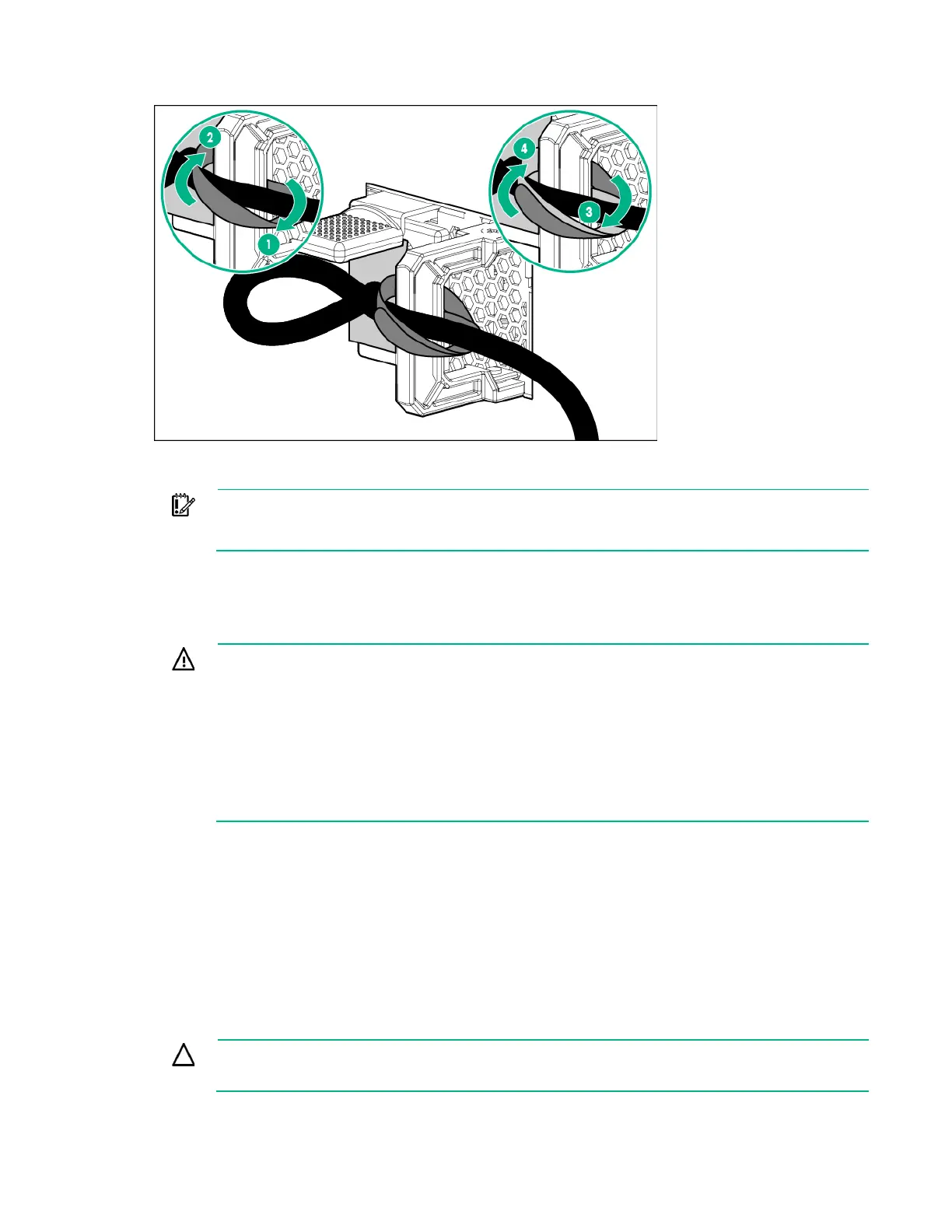 6. Use the hook-and-loop strap included in the server shipping carton to secure the power cords and