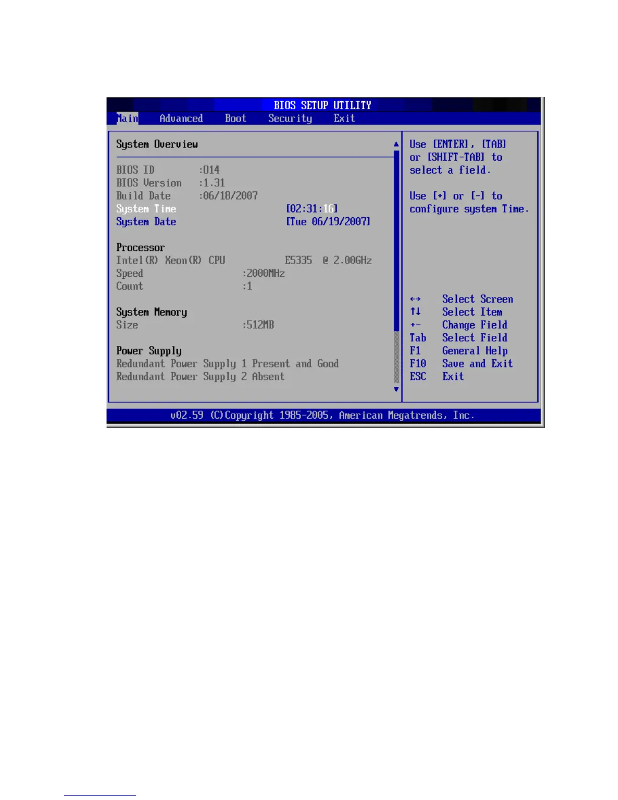 Figure 67 Main menu of the BIOS Setup Utility