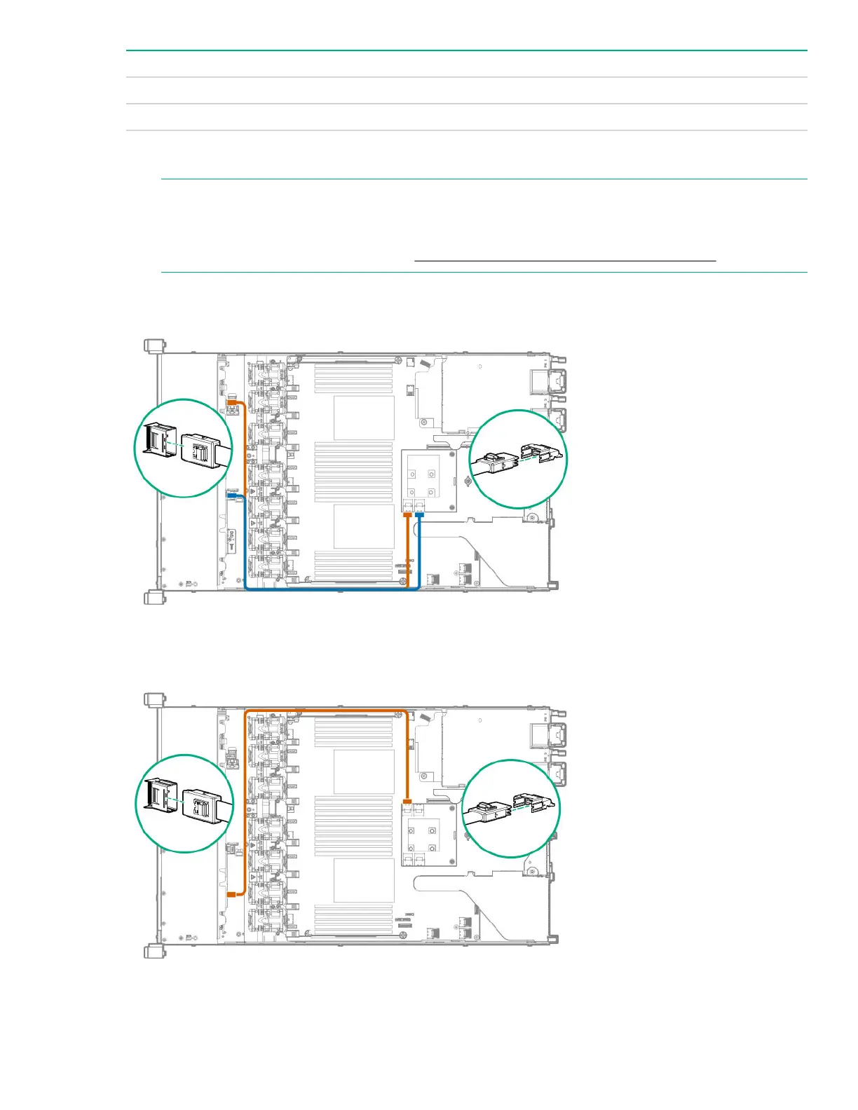 on optional cable routing, see the Hewlett Packard Enterprise DL360 Gen10 Server cabling matrix on