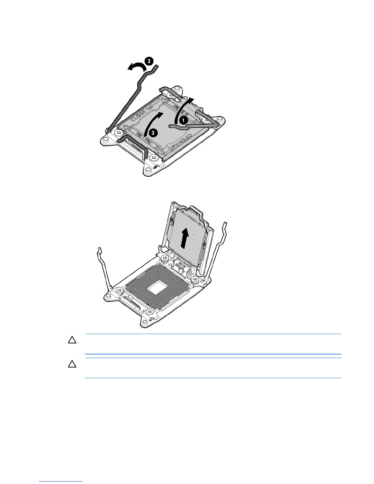 Open each of the processor locking levers in the order indicated, and then open the processor retaining