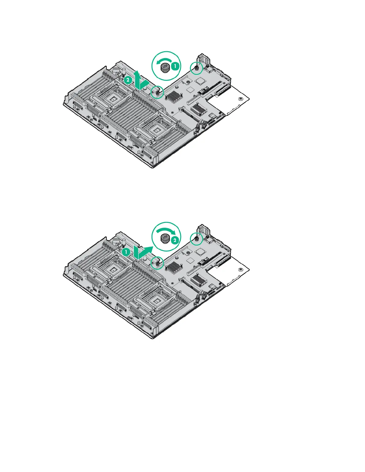 1. Align the system board on the tray, and tighten the thumbscrew to secure it.