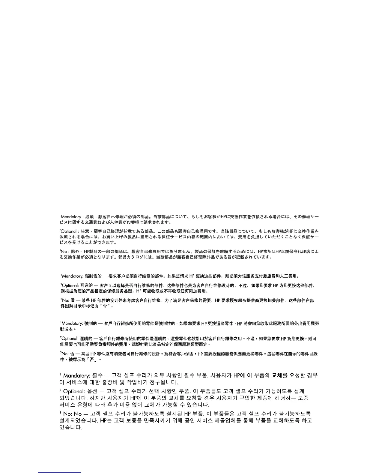 Mandatory: Verplicht—Onderdelen waarvoor Customer Self Repair verplicht is. Als u HP verzoekt deze onderdelen te